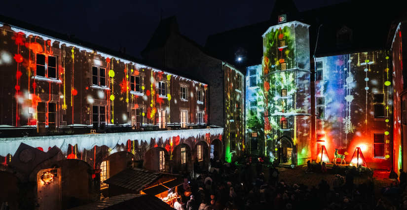 Pendant L’Avent, les visiteurs profitent d’ateliers créatifs en continu, d’une grande chasse aux “Pierres de Lumière”, de décors illuminés dans la cour et les jardins, ainsi que du mapping vidéo La légende des Pierres de Lumière, projeté dès la tombée de la nuit.