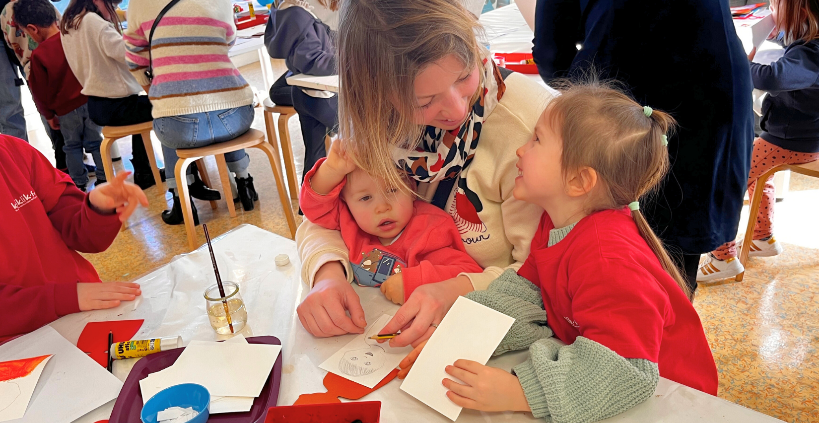 Autour des tables, certains parents découpent, collent, inventent avec leurs enfants. D’autres observent, échangent un regard complice, encouragent d’un sourire. Une mamie, ce jour-là, avait même sorti ses aiguilles et tricotait tranquillement pendant que son petit-fils bricolait avec application.