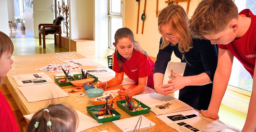 Papiers colorés, ciseaux, colle, feutres, crayons, peintures… tout est prêt et attend les enfants. Sur les murs, des reproductions d’oeuvres du musées sont affichées, en référence avec le thème de ces vacances d’hiver : l’amour.